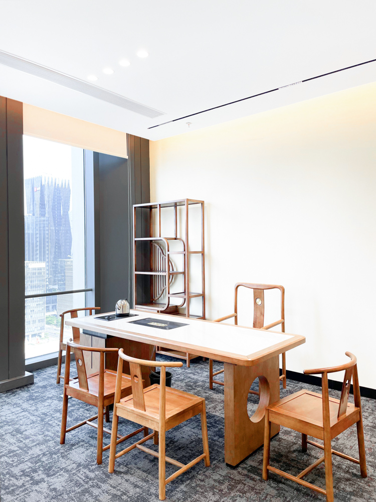 本案为中恒建设集团大湾区办事处的分部入驻海珠区琶洲广州国际航运大厦,其地理位置是琶洲中轴一线临江超甲级写字楼,是数智经济的核心片区。而现代办公室设计越来越注重人文与情感的融合,不仅有功能需求还要创造具有凝聚力的品牌形象与企业愿景。因此,利用得天独厚的地理位置,采用以美学理论作为空间的传达语言艺术,通过现代点、线、面、几何等多重元素延伸,打造现代化的办公室设计装修。